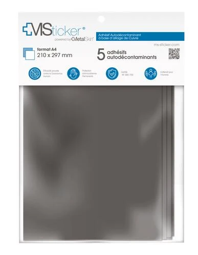 - 5 feuilles d’adhĂ©sif autodĂ©contaminant format A4.