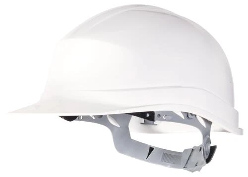 - Casque de chantier polypropylène traité anti-UV blanc.