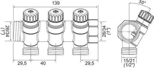 Collecteur Avec Vannes 3 Départs EASY LOCK Départ M15/21 Arrivé 26/34- FIXOCONNECT