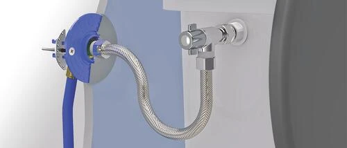 - Livré avec rosace chromée et robinet d’arrêt WC à écrou tournant.