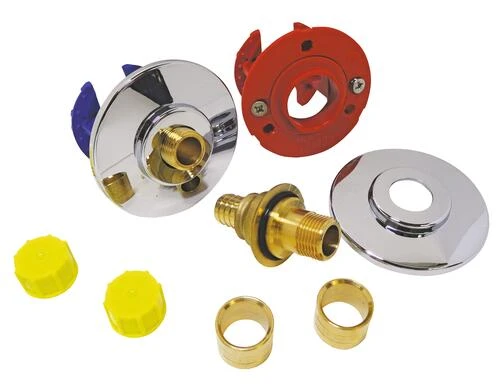 - Kit comprenant :- 1 Fixoplac double permettant la fixation, sur plaque de platre, d’un raccord droit à glissement pour PER de 12