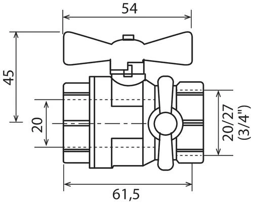 Vanne à Sphère Double Femelle 20/27 à Purge V490 – Manette Papillon – PRONORM