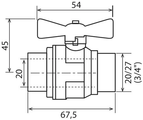 Vanne à Sphère Double Mâle 20/27 V490 – Manette Papillon – PRONORM