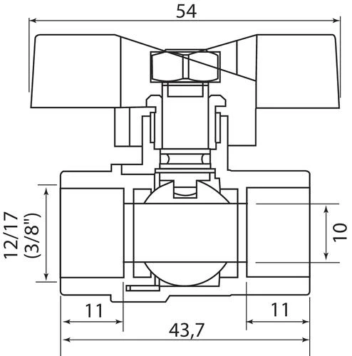 Vanne à Sphère NF Double Femelle 12/17 – Manette Papillon – PRONORM